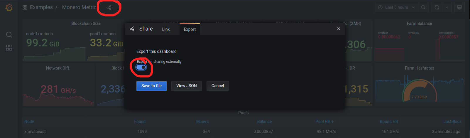 Now you can create your Monero dashboard. You may export my dashboard template from the demo site by clicking share icon.