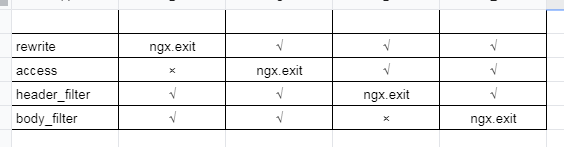 However, if you execute ngx.exit during the access phase, it only interrupts the request processing phase, and the response phase will still process it, i.e. if you configure the response-rewrite plugin, it will force overwriting of your response information (e.g. response status code).