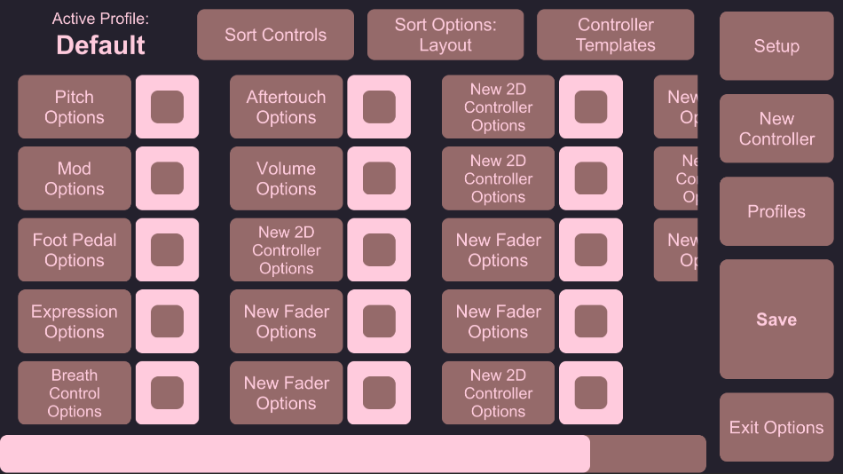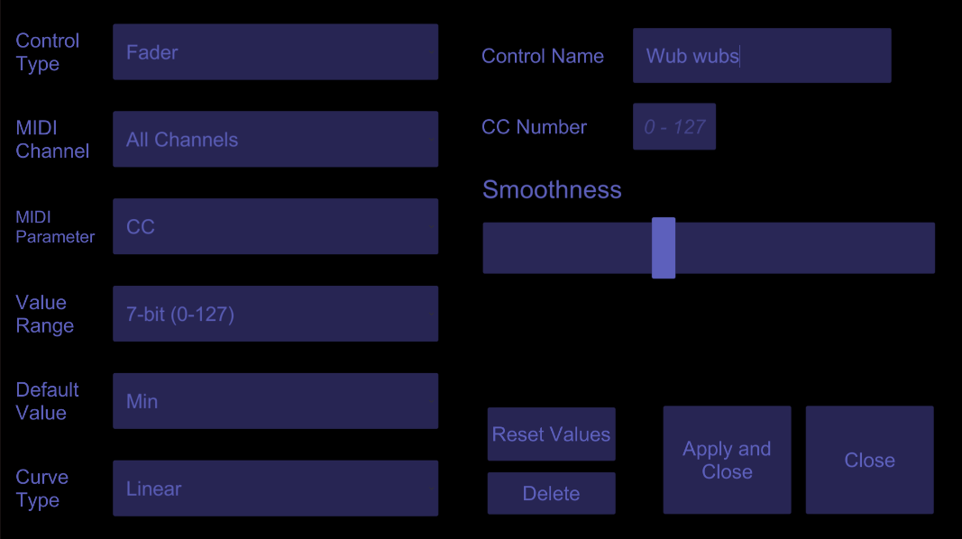 - Create faders that return to their default value when released (like a pitch wheel, but with extra options)