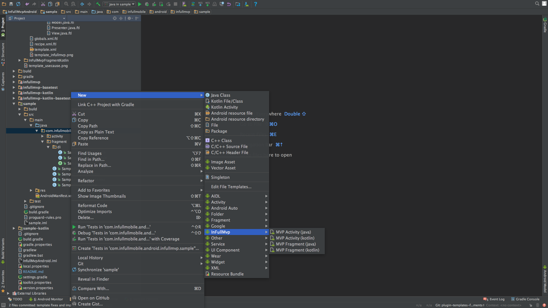 Just copy InFullMvp folders from android-studio-plugin to