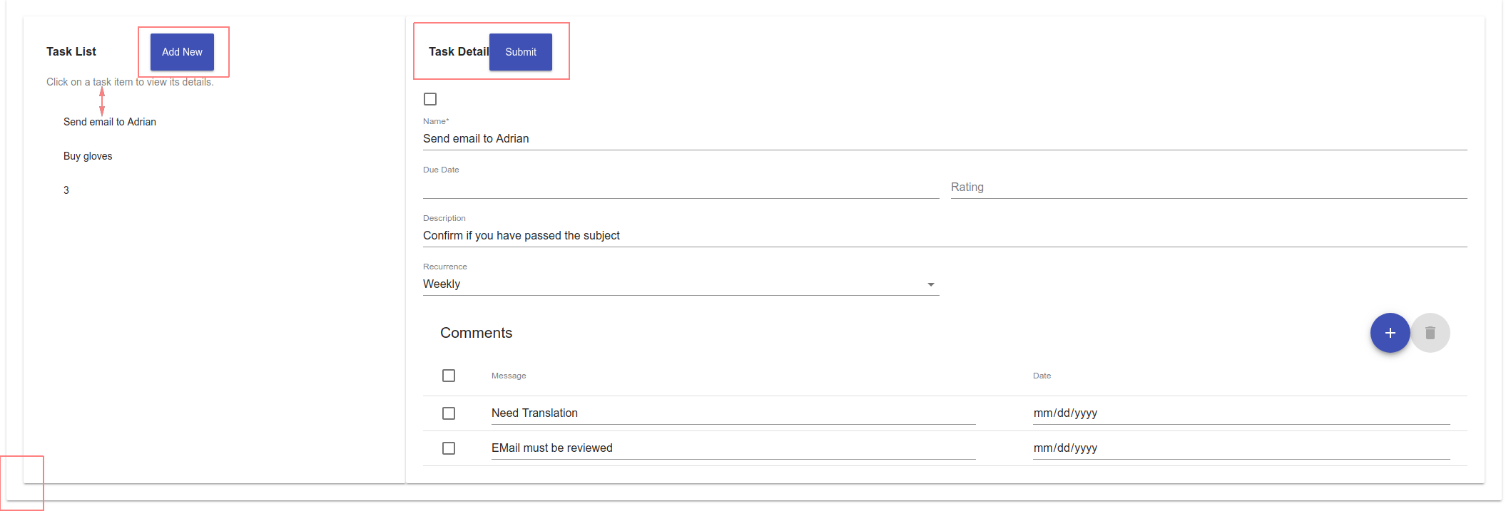 - In the details view: spacing of the title and 'Submit' button