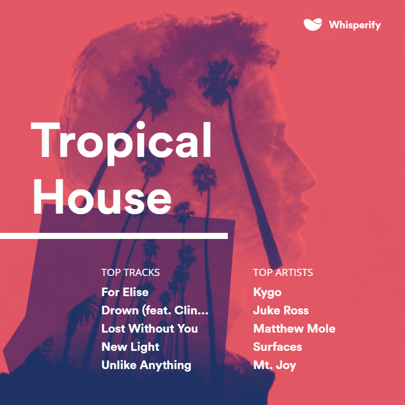 As an open-source project, Whisperify is dedicated to give back. A public API is currently under works to provide endpoints to access audio feature analysis for Spotify users in over 70 countries and 16 personalities. Other endpoints are wrappers for the Spotify API combined with Whisperify's features: getting audio features for an album, getting clusters of genres for a user or artist, getting a recreated taste profile of a user.
