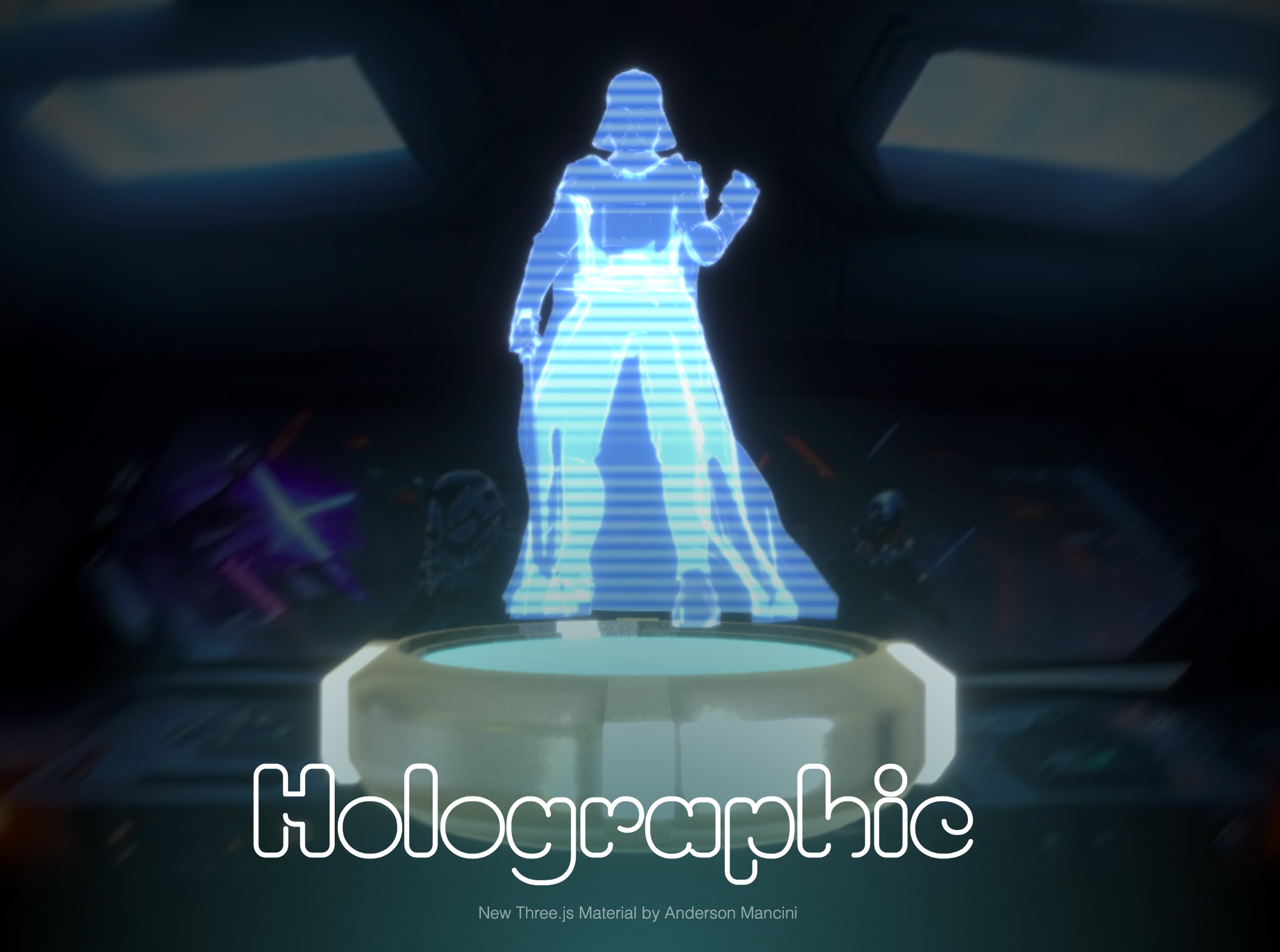 Code Sandbox simplest example: https://codesandbox.io/p/devbox/holographic-material-for-react-three-fiber-simple-example-hq24t2
