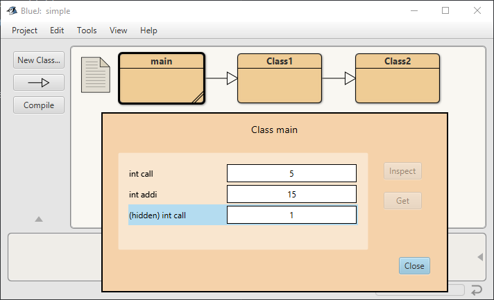 Click Inspect on the main method in BlueJ shows the call tree for that execution chain.