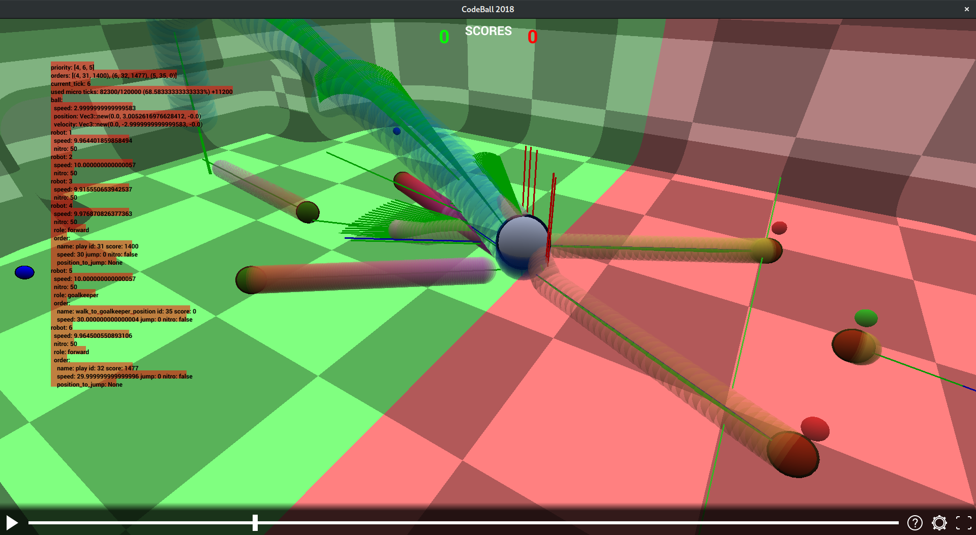 scripts/run_vs_helper.shStrategy work for all robots at once. Actions are calculating once per game tick for all robots. Possible action has restrictions depending on a robot role. There are following stages: