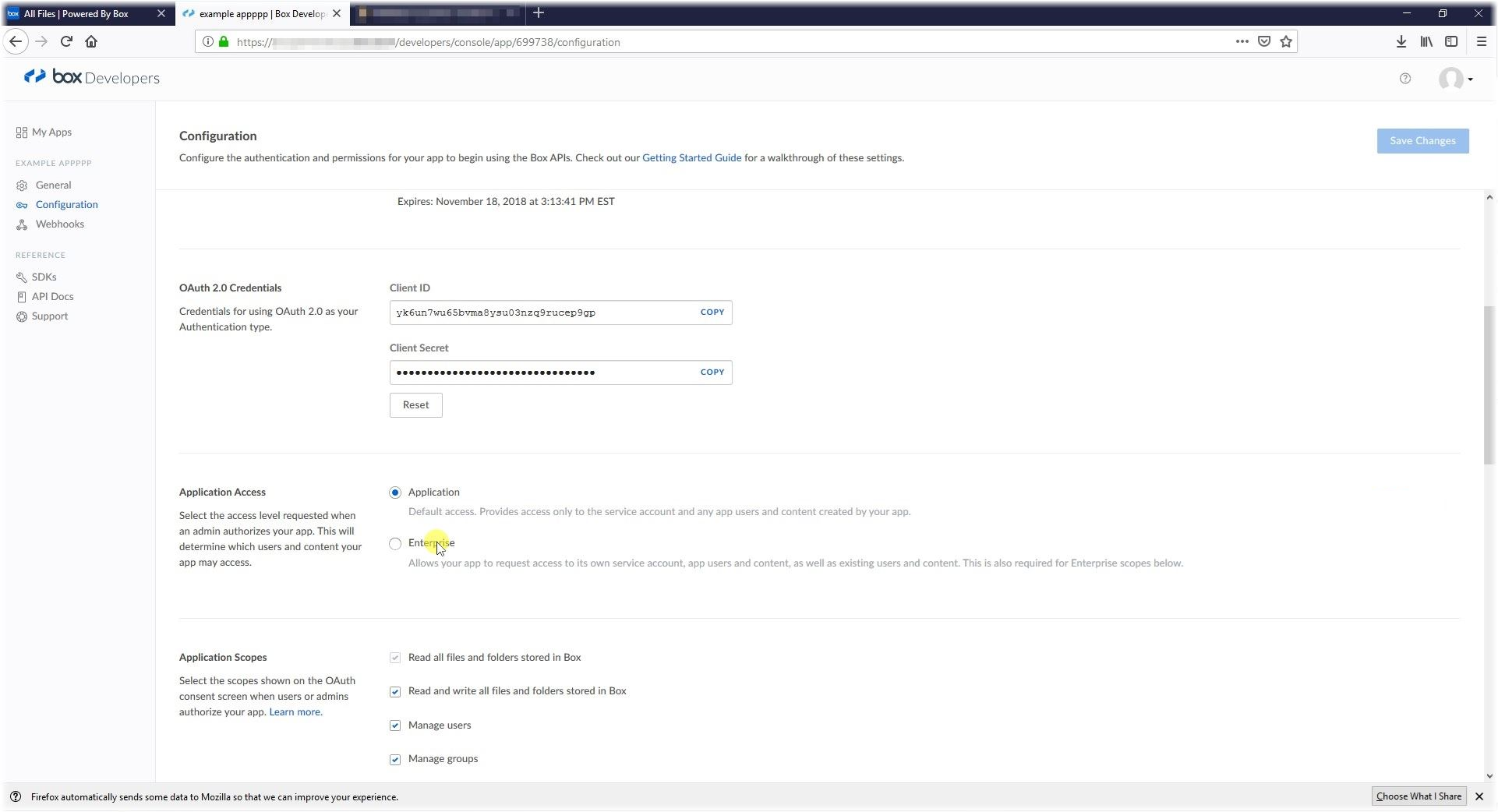 - On the app configuration page, select "Enterprise" in the "Application Access" section.