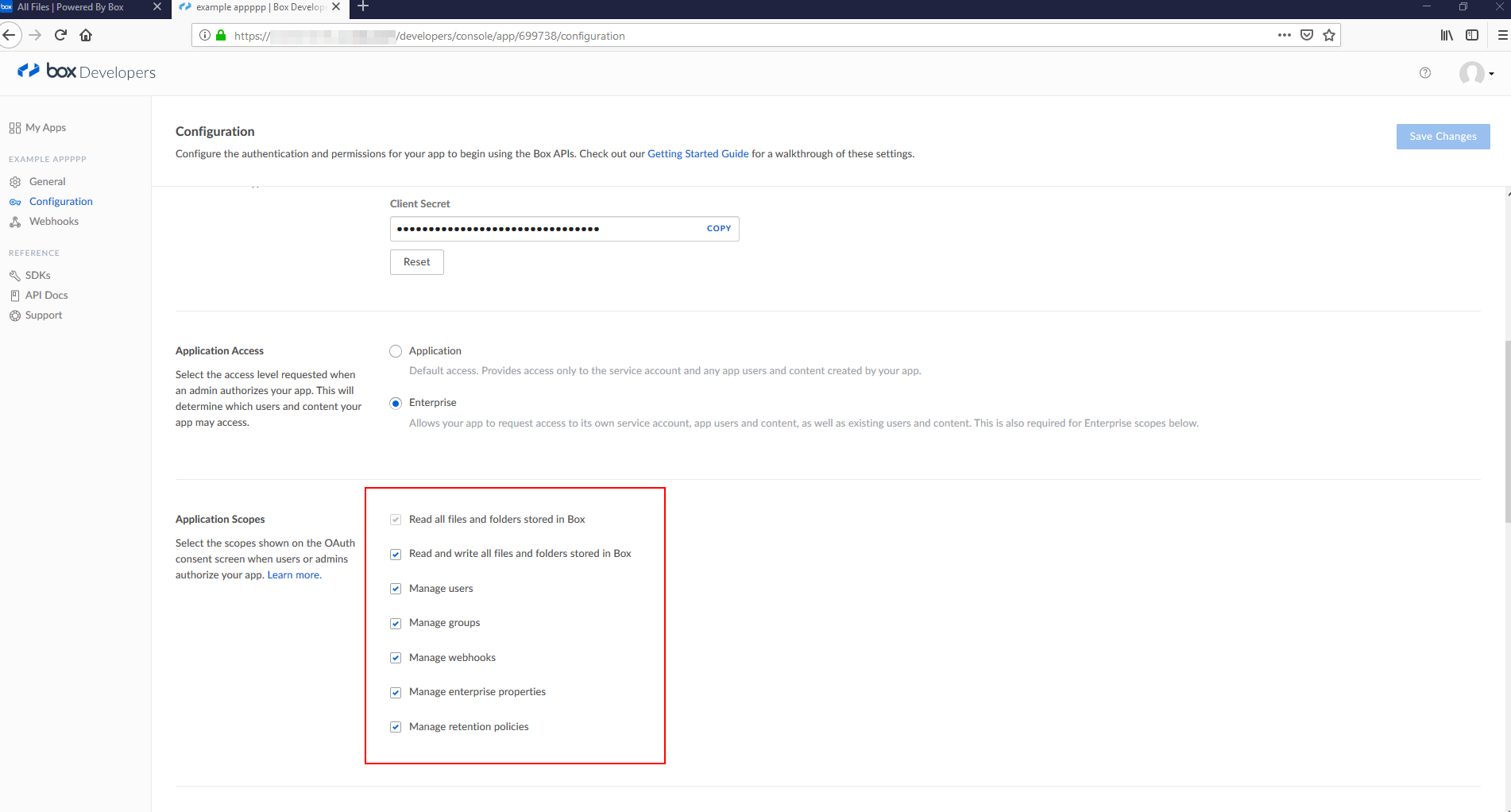 - Check all of the items in the "Application Scopes" section to grant the app the permissions it needs.