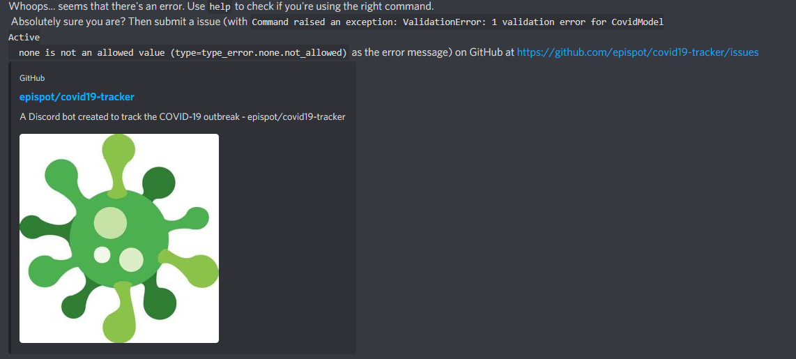 Command raised an exception: ValidationError: 1 validation error for CovidModel Active none is not an allowed value