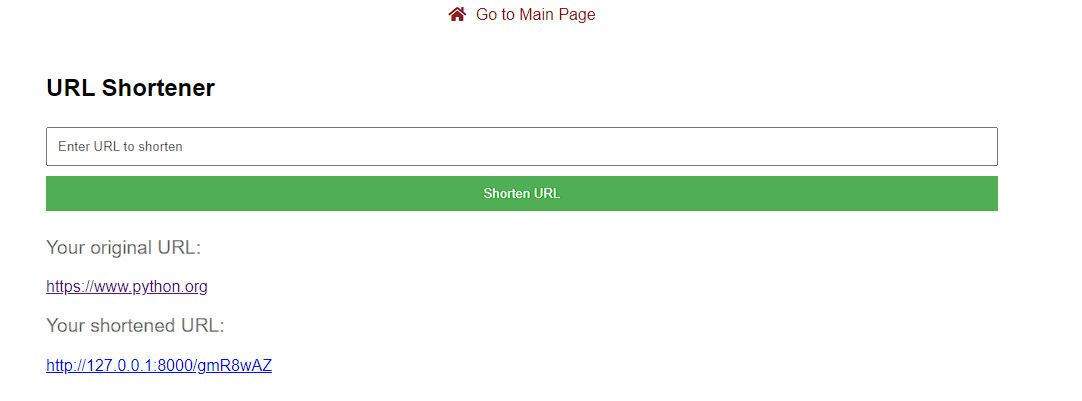 - Users can input long URLs, and the system will generate a unique short URL for each input
