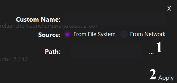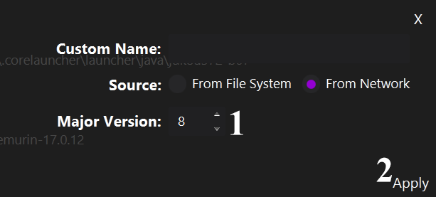 Downloads and adds the latest Java by the selected major version to the launcher. Then close the selector.