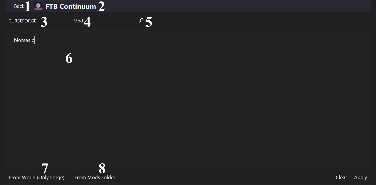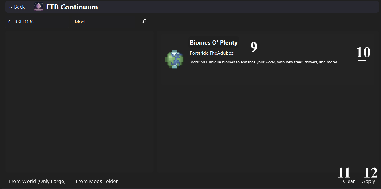 Extract all mod names from the selected world, and write them into the query box. Works with only Forge.