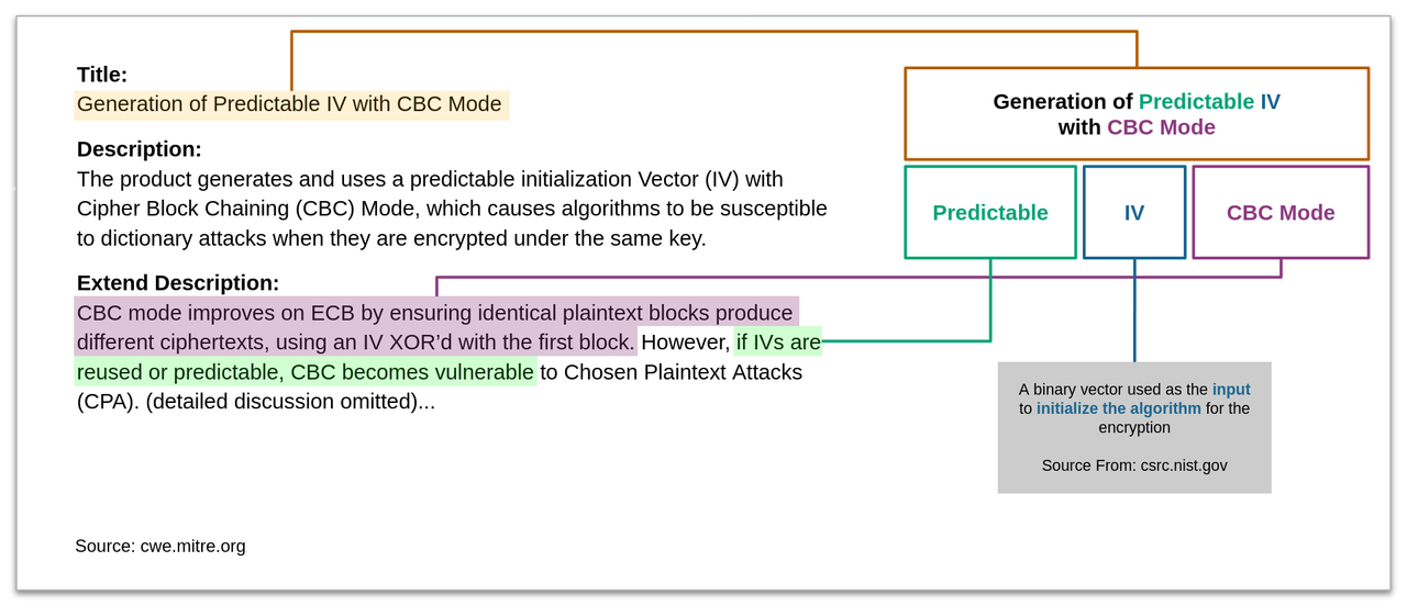 | 6 | +## CWE-329: Generation of Predictable IV with CBC Mode |