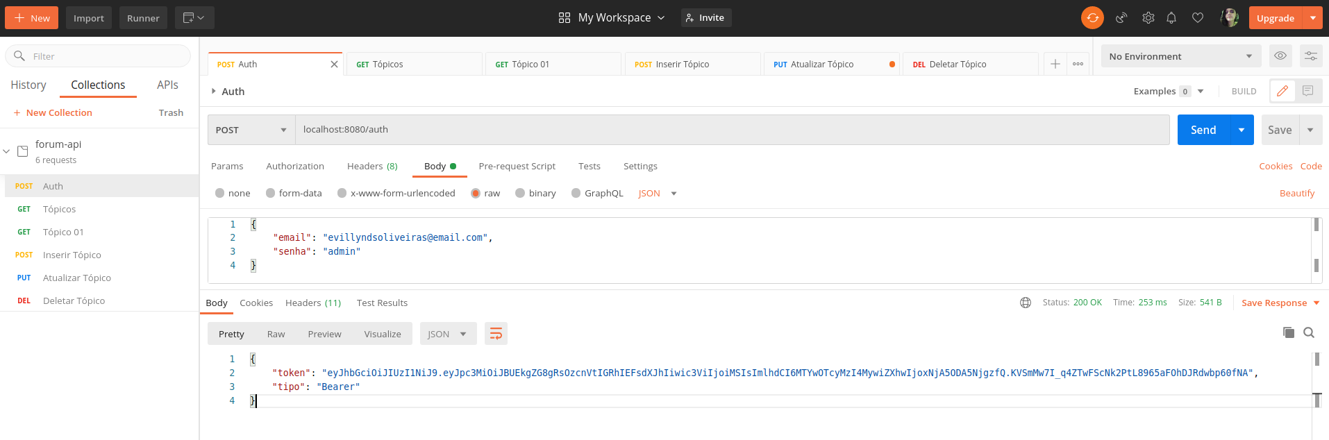 At first, you have to input your email and password to receive your token, so you can make some priviliged requests!!
