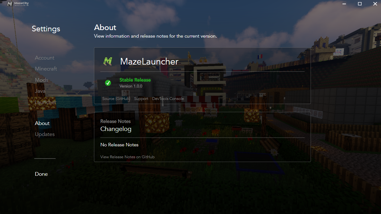 Join Mazecity servers without worrying about installing Java, Forge, or other mods. We'll handle that for you.