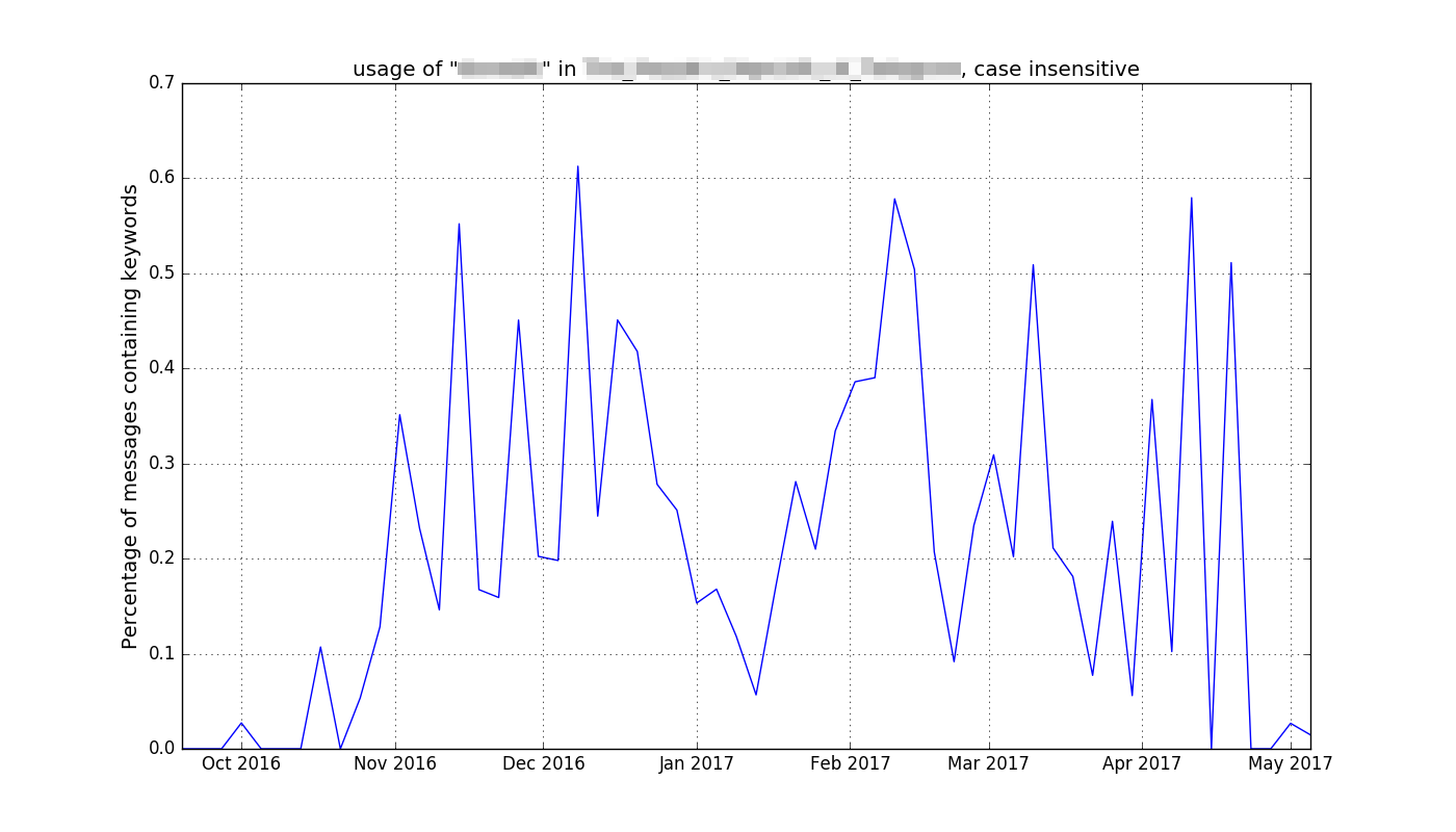 phraseovertime.py: compare popularity of different phrases in a chat through time