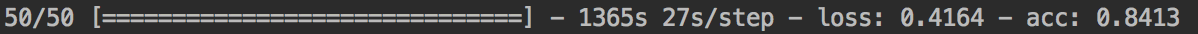 Training time rounds up to ~ 27s per single epoch step (5 epochs add up to about 2h runtime).