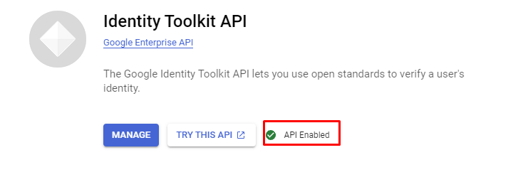I checked if the Identity Toolkit API was disabled, but it wasn't: