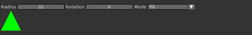 Triangles are drawn by defining a radius, which is the length from the center of the triangle to the 3 points. A rotation in degrees can be specified to rotate the triangle.