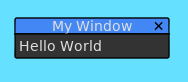 | Title | String | The title to display for this window. If emtpy, no title bar will be rendered and the window will not be movable. |