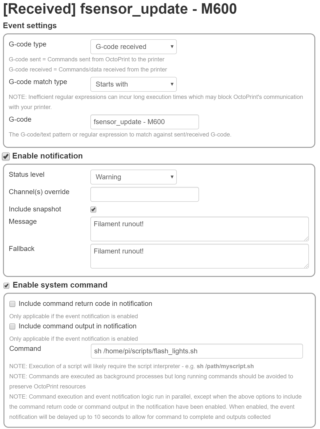 - G-code received from the printer (including filament runout messages)