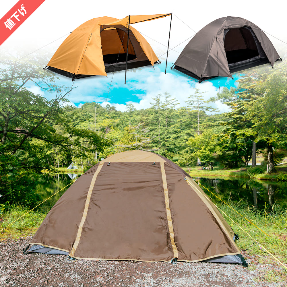 1-2名用の小型テント。5,000円-1.5万円程度で十分。2名用を1人で独占するのが快適。