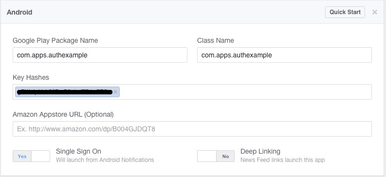 com.apps.authexamplename as both theClass Nameand theGoogle Play Package Name. It is not a validGoogle Play Package Namebut it serves well as a placeholder during development - Enter your