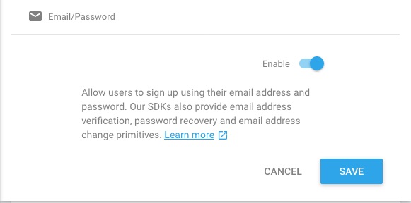 Email/Passwordrow in theSign-in providerstable - In the window that opened move the