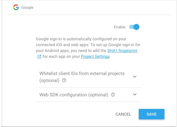 Googlerow in theSign-in providerstable - In the window that opened move the