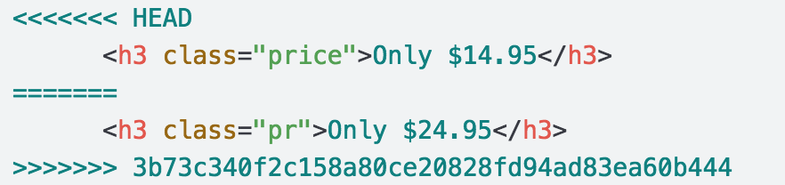 Note: your numbers/letters after the >>>>>>> should be different