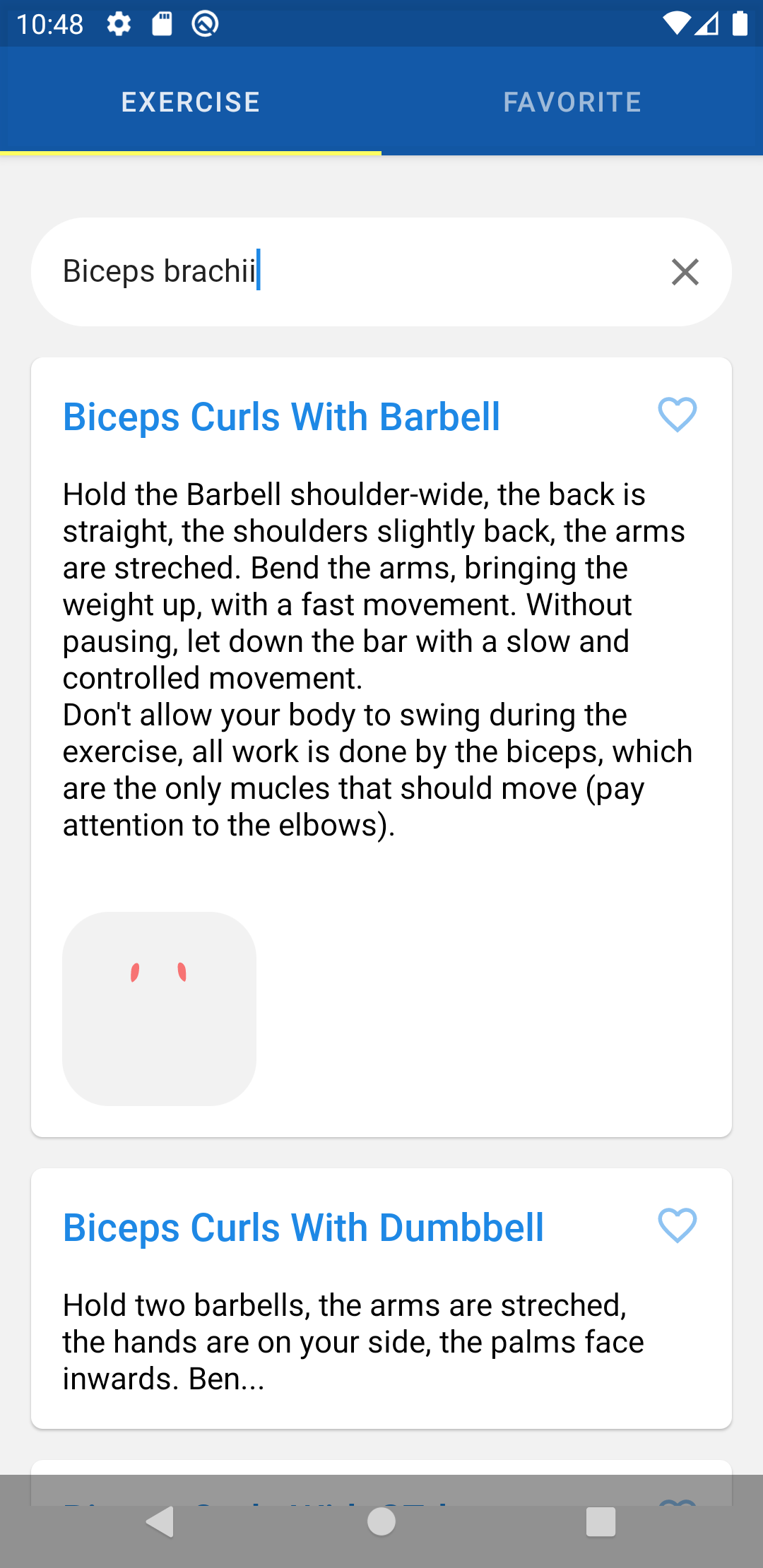 - Hit the heart button to favourite the exercise so this can be viewed later