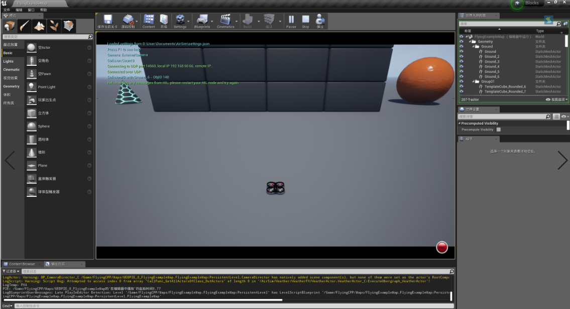 UnrealEngine/Engine/Binaries/Linux/UE4Editor. - Now you can see the simulator interface. Under the AirSim directory