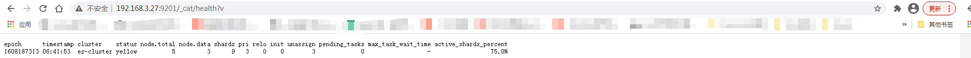 curl http://localhost:9200/_cat/health?v 查看集群状态,出现如下信息则集群搭建成功