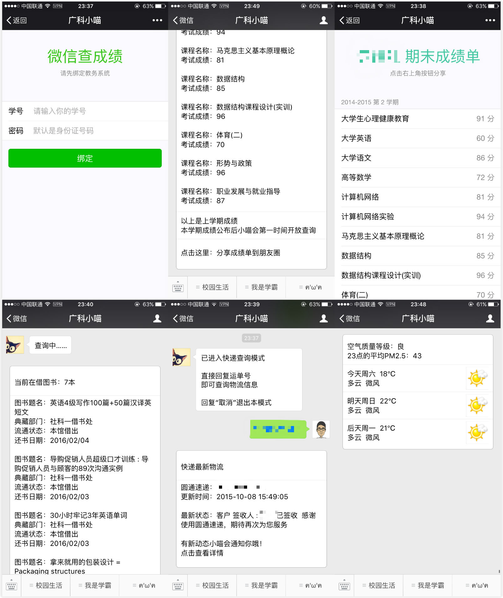 校园微信公众号后端,为在校学生提供一系列信息查询与便民服务。