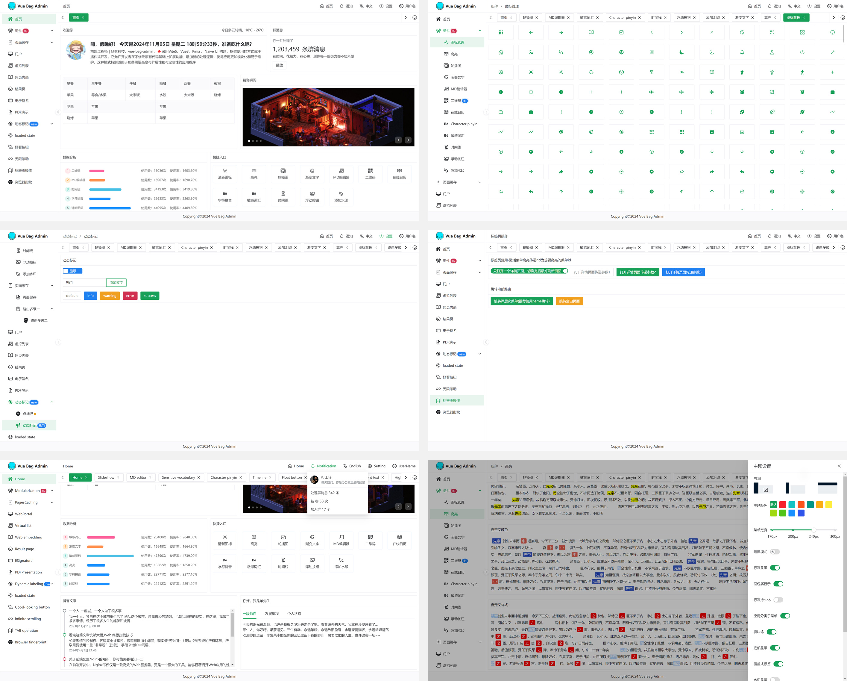 Vue-Bag-Admin 采用 Vue3 、Vite5 、Naive UI 、JavaScript 、Pinia 等等前端最新的技术栈开发,通过 npm 包引入,它允许开发者在不修改原代码基础上扩展新的功能,使得应用更加模块化和易于维护,一款清新好看的响应式中后台管理系统