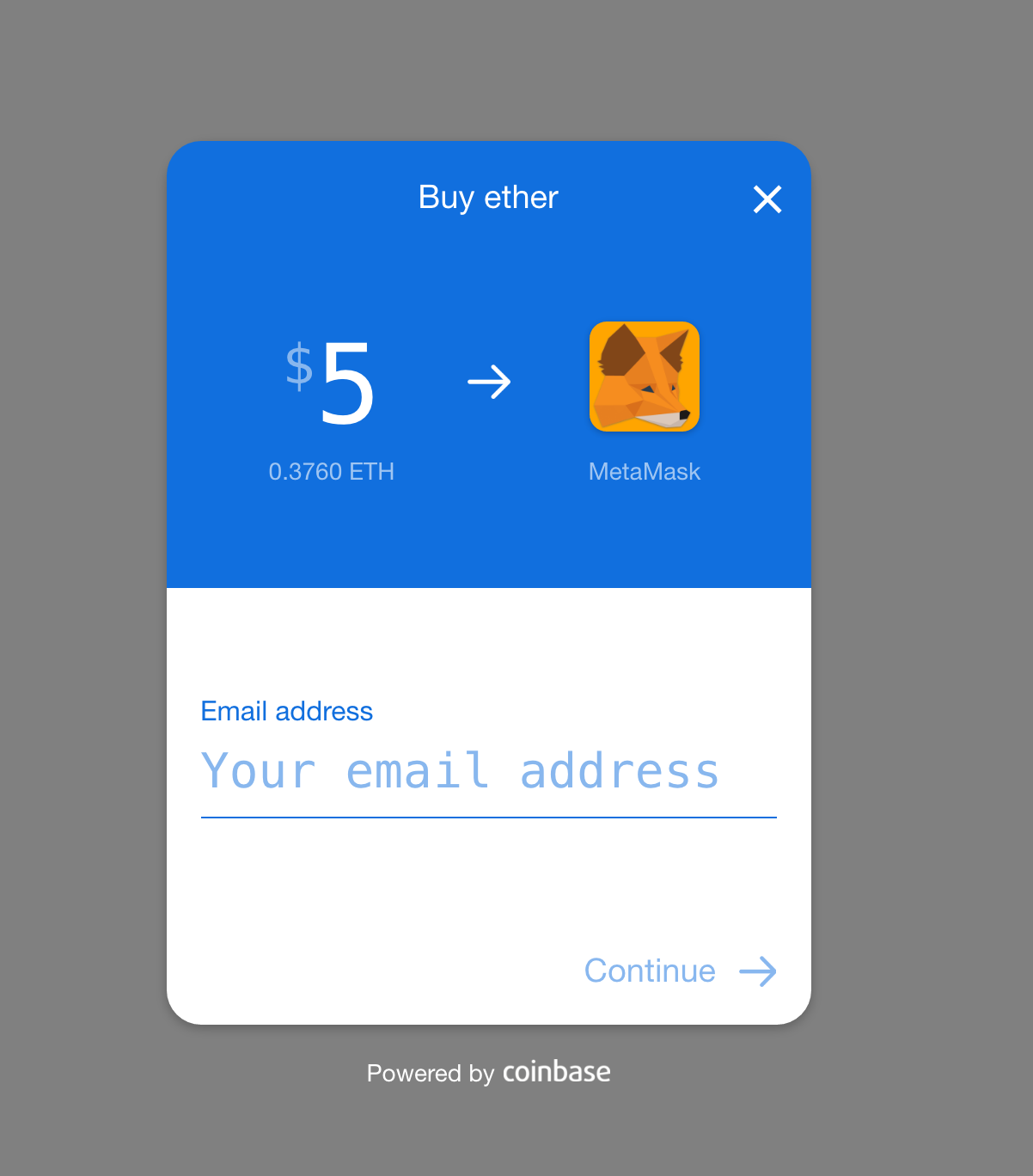 We've teamed up with Coinbase to bring you a quick, easy way to purchase small amounts of Ether using a Debit card, without needing to sign up for an account.