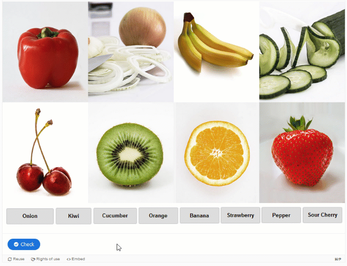Dieses Format eignet sich besonders gut für das Vokabeltraining oder die Verknüpfung verschiedener Begriffe und deren bildlichen Darstellungen.