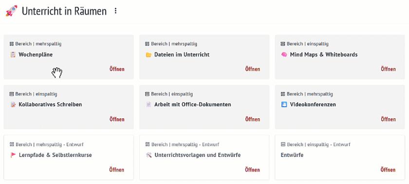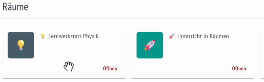 Zukünftig werden Räume zum zentralen Arbeitsort der Cloud. Durch das Hinzufügen von Lernenden ist nun erstmals auch der Unterricht in Räumen möglich, auch wenn Aufgaben und individuelle Abgaben in den Räumen noch nicht verfügbar sind. Sie können allerdings schon jetzt zur Ergebnissicherung in Gruppenarbeitsphasen genutzt werden. Um alle zukünftigen Möglichkeiten nutzen zu können, sollten neue Inhalte von nun an in den Räumen erstellt werden.