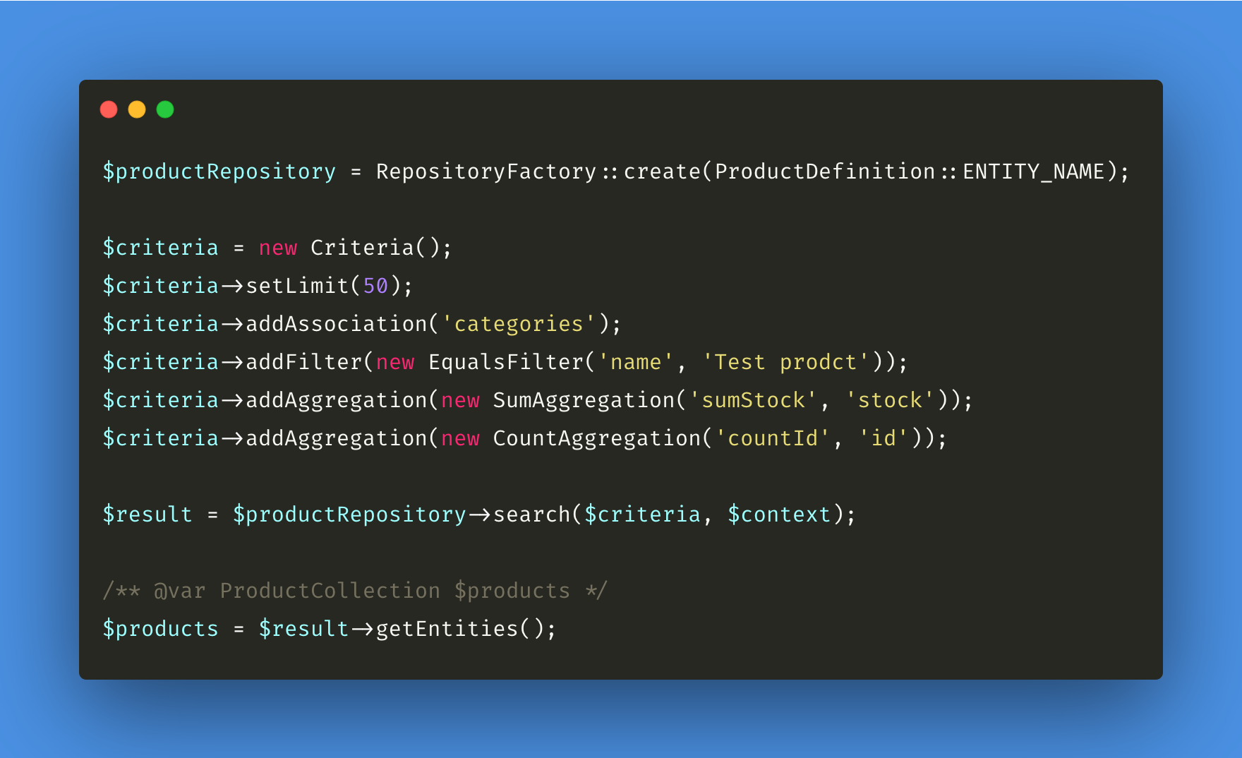 If you're familiar with Shopware 6 DAL syntax and how to retrieve it you might see this example is predictable and straightforward