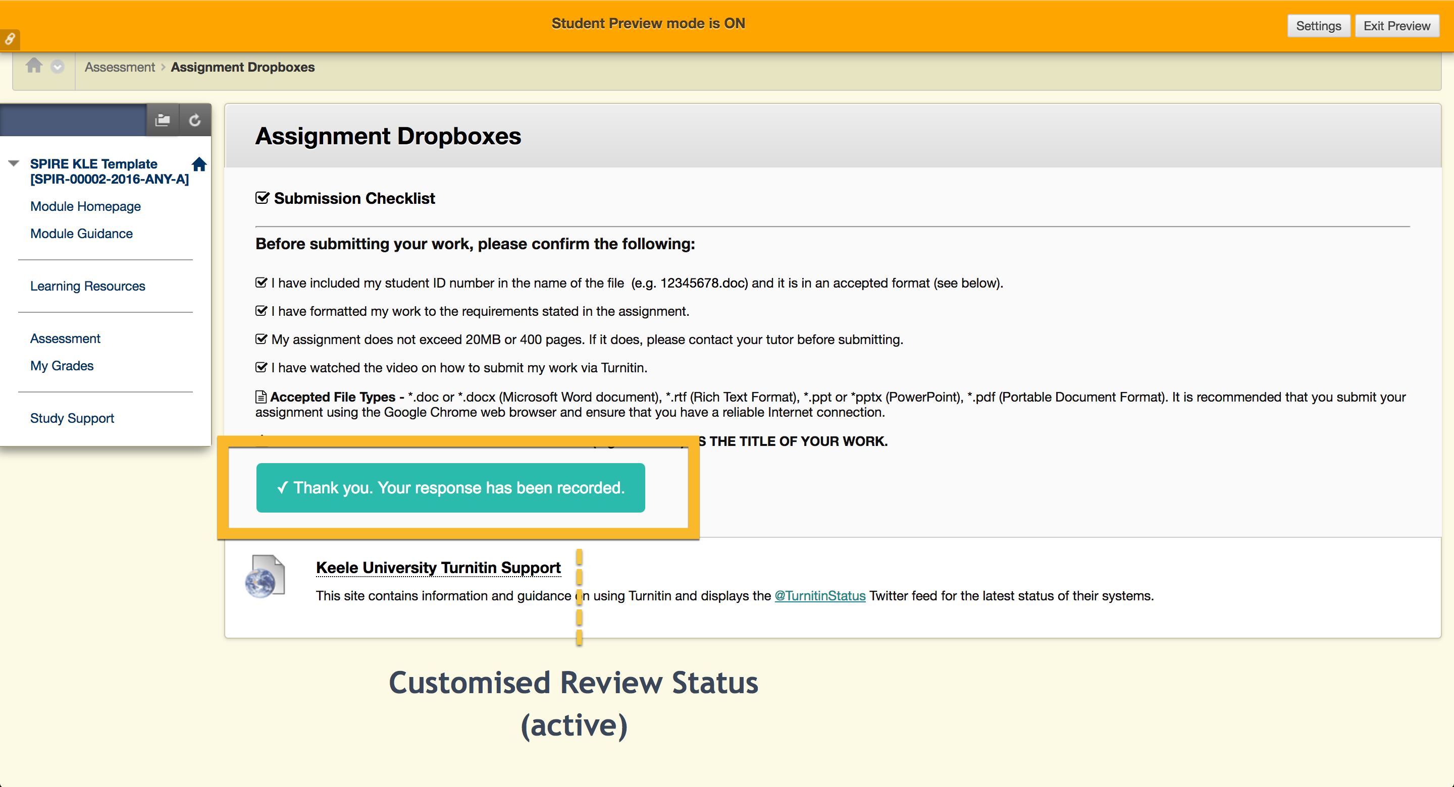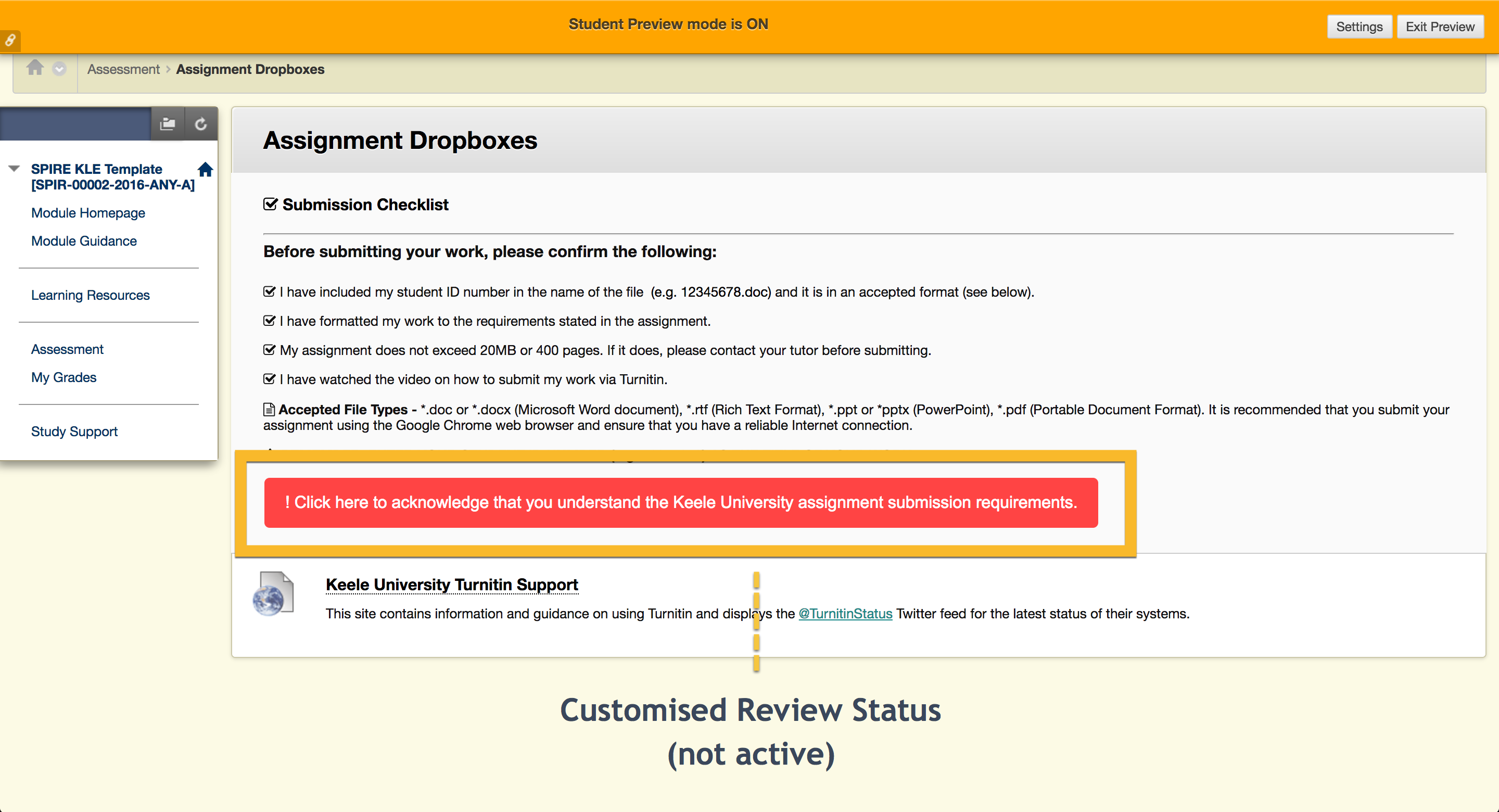 Although useful, the styling of Blackboard's Review Status makes it easy to miss. Therefore, its potential as an indicator for students to track which content they have engaged with is diminished. This hack restyles Review Status and offers alternative uses, such as a confirmation button (pictured below).