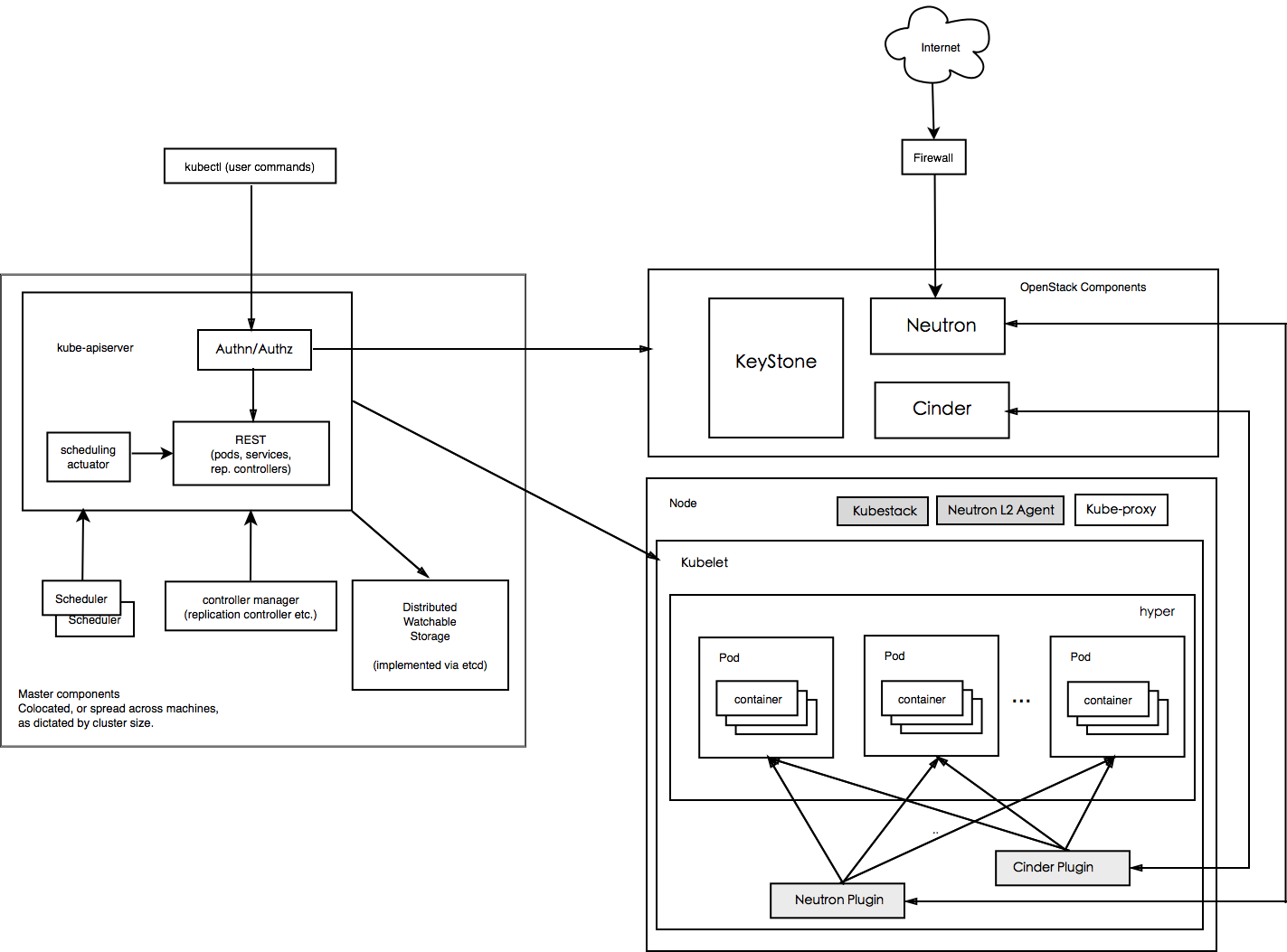 Hypernetes = Bare-metal + Hyper + Kubernetes + KeyStone + Cinder + Neutron.