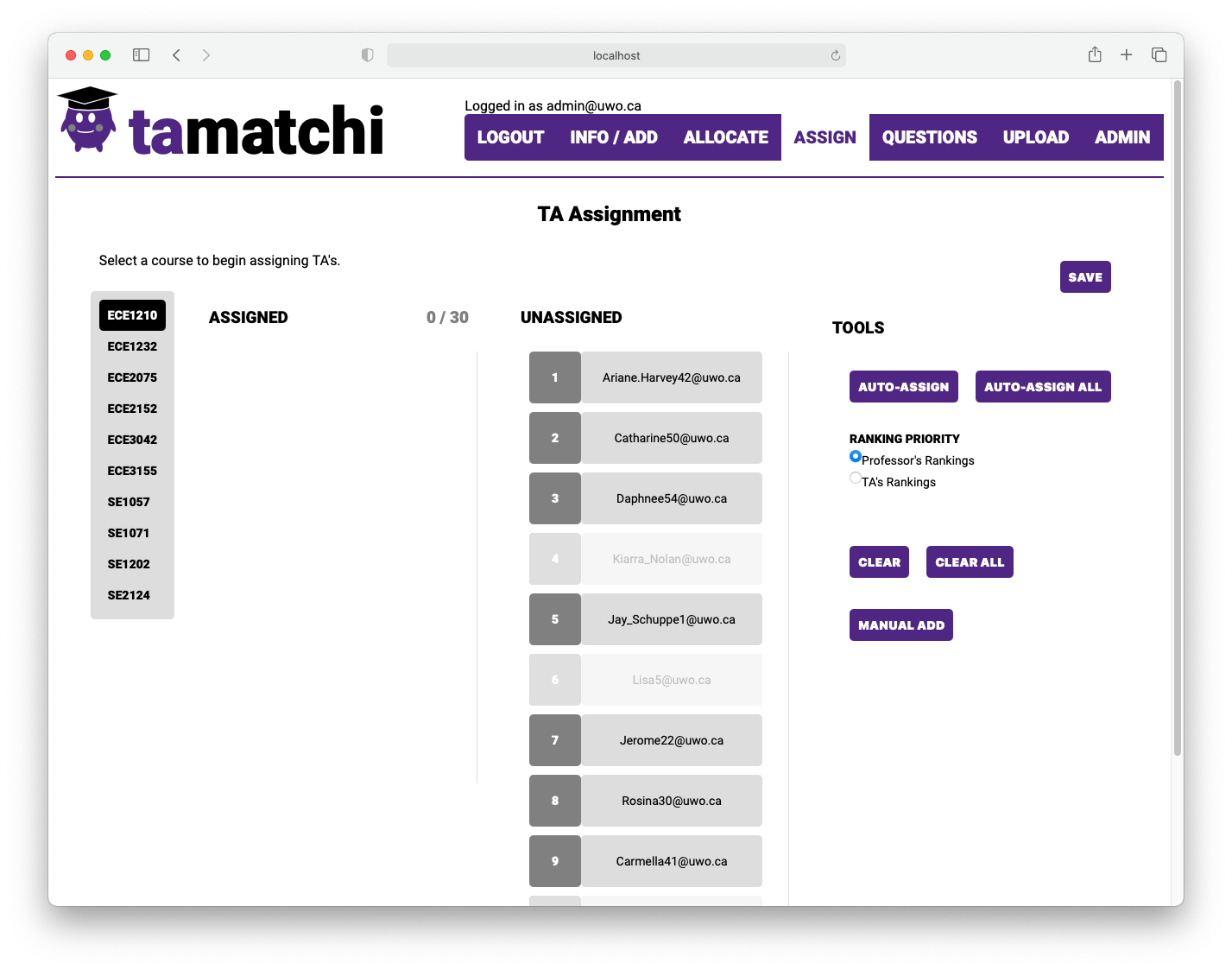 TA Matchi is a TA matching website for the faculty of Electrical Engineering. It will allow the faculty to automatically match TA's to courses that need them using an algorithm that takes into account multiple factors.