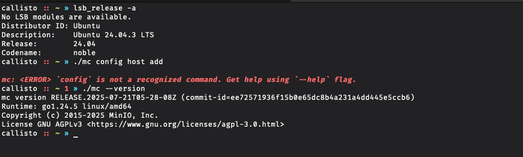 Version: mc version RELEASE.2025-07-21T05-28-08Z