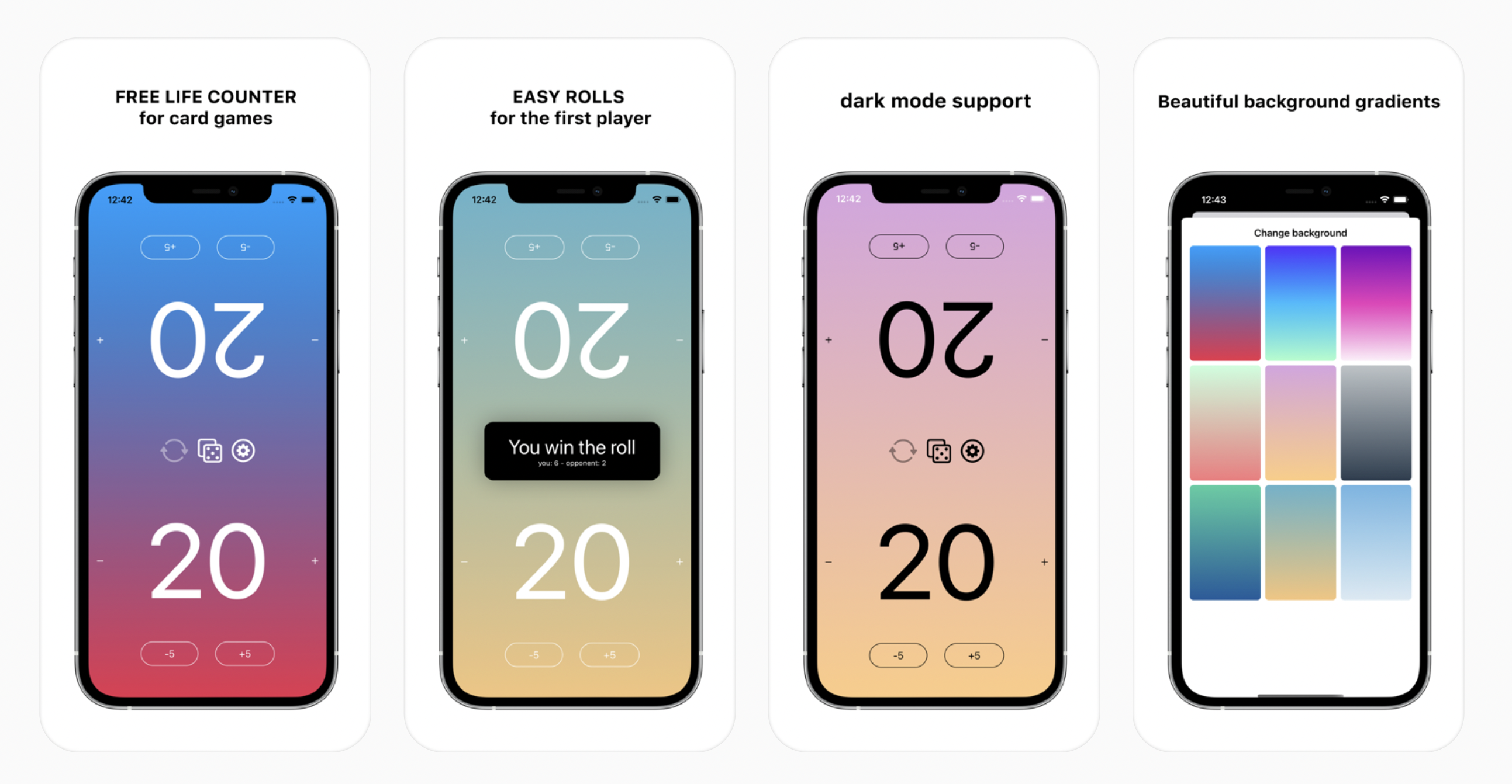 Life counter for card games Made this app in the weekend to help ma boys with https://www.epiccardgame.com/ https://apps.apple.com/ru/app/wizards-pal-life-counter/id1608669737?l=en
