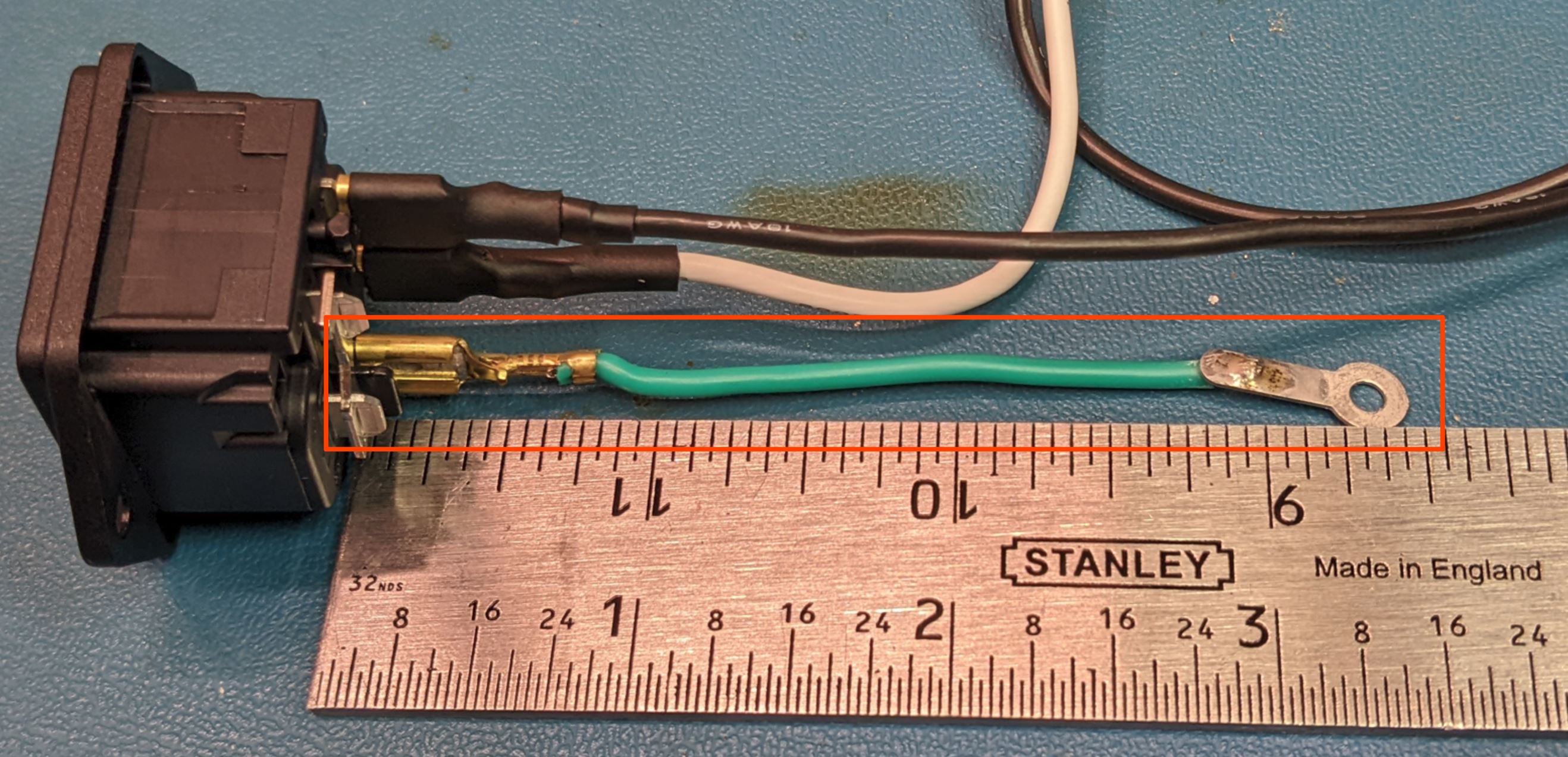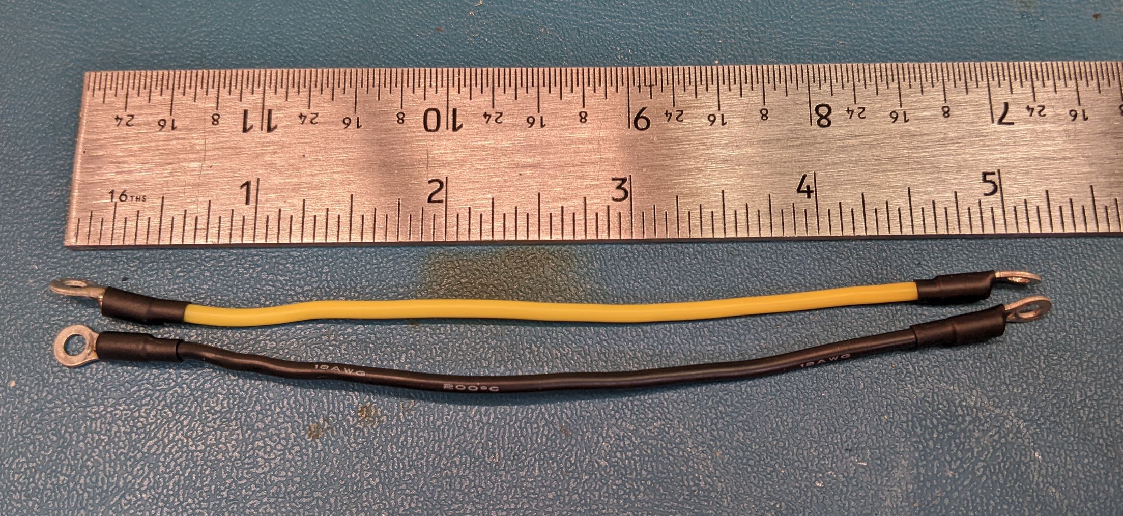 - 18 gage wire in white, black, yellow, and green.