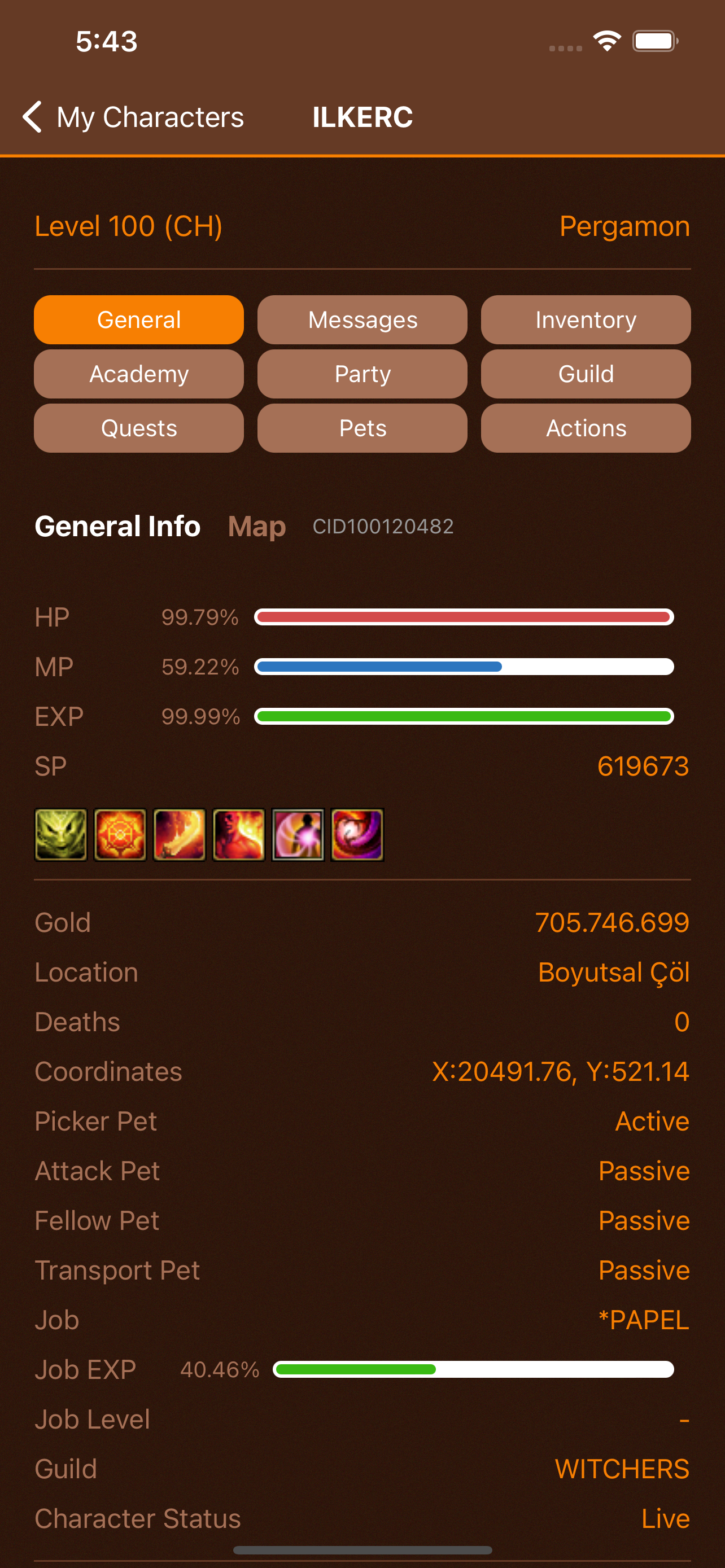 - If your character does not send data to the server for 5 minutes; There will be "No connection" information in the mobile application. In this case, you may not see the character information in the mobile application.