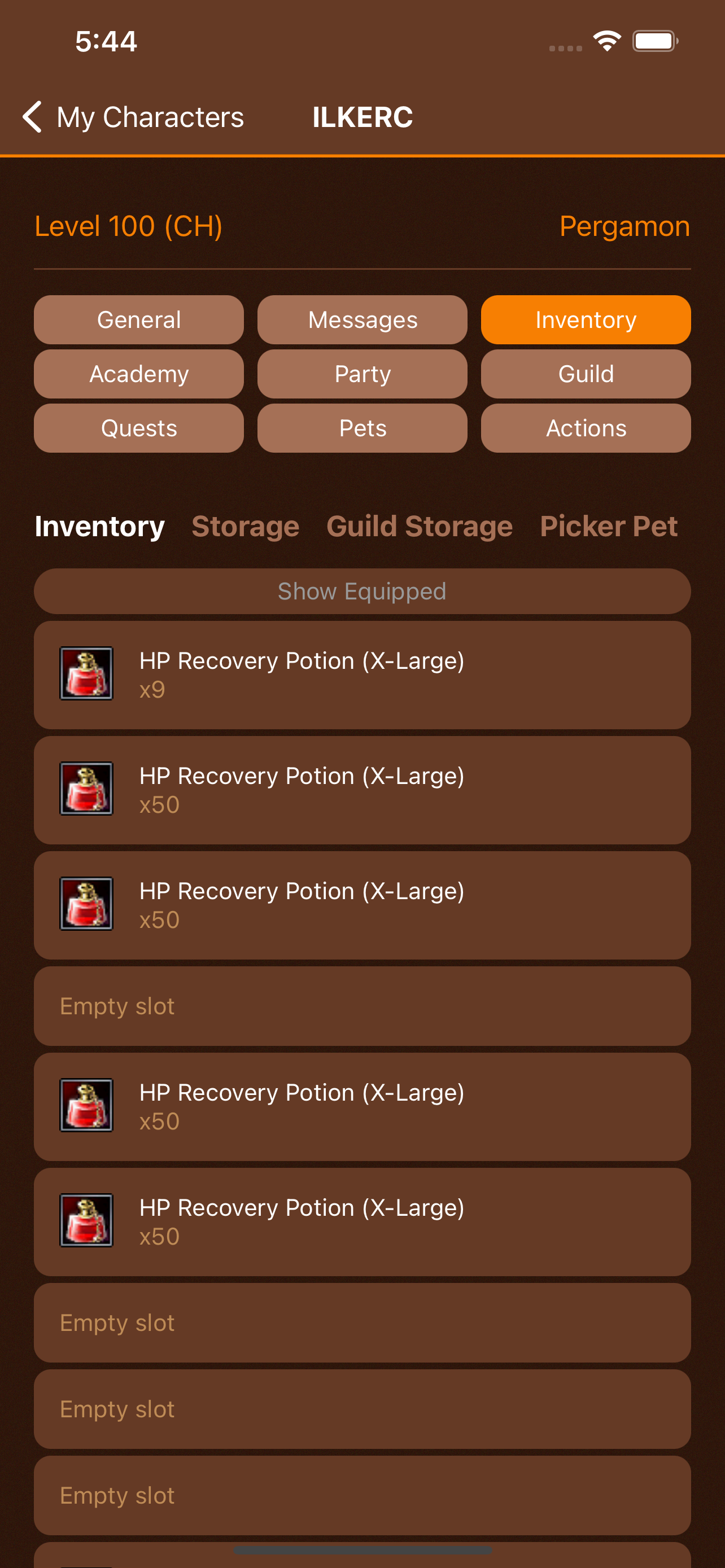 - Easily view character inventory, storage, guild storage and picker pet items