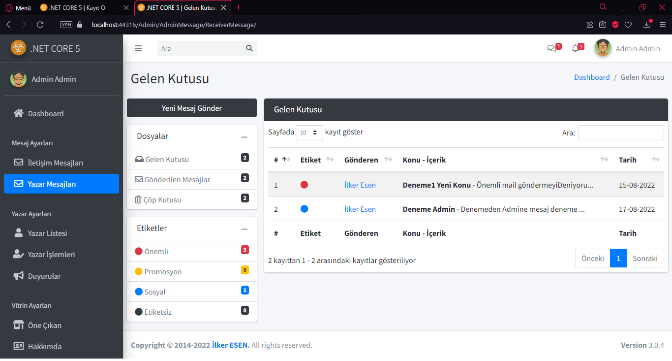 AspNet Core 5.0 Entity Framework Core N Tier Architecture Repository Design Pattern Fluent Validation Restful Api Deploy Github Yönetimi Mvc Unit of Work Charts Ajax Reporting Identity Rolleme