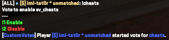 "cheats", // command to trigger the vote
