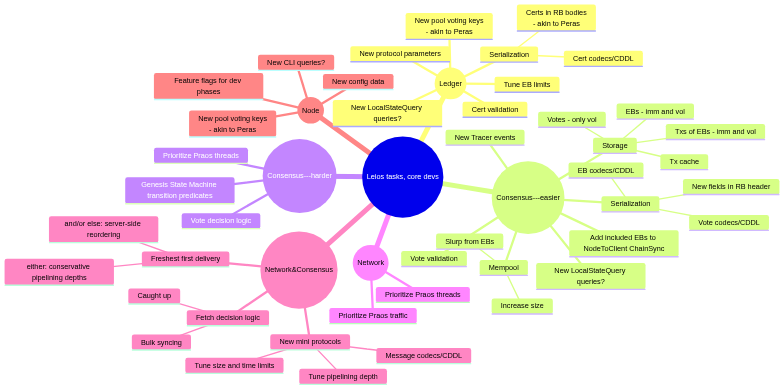 | The implementation of Ouroboros Leios represents a substantial evolution of the Cardano consensus protocol that must integrate carefully with existing infrastructure and emerging features. This section examines the critical dependencies that must be satisfied before Leios deployment, identifies synergies with parallel developments, and analyzes potential conflicts that require careful coordination. The analysis informs both the implementation timeline and architectural decisions throughout the development process. | ||