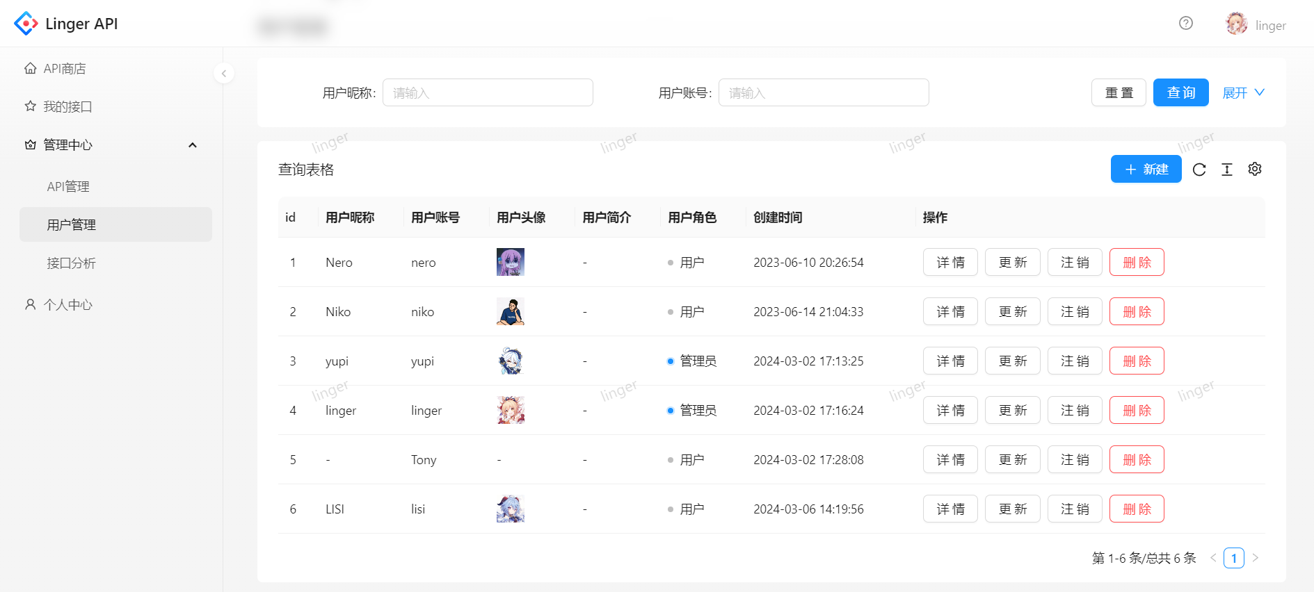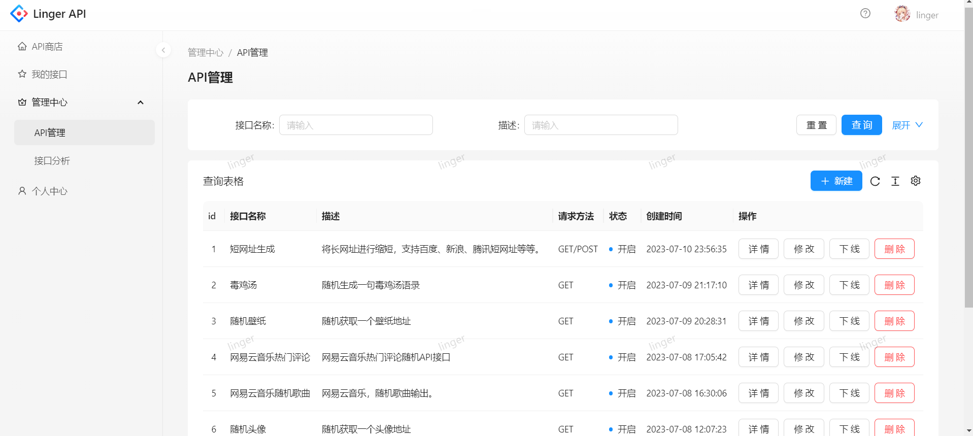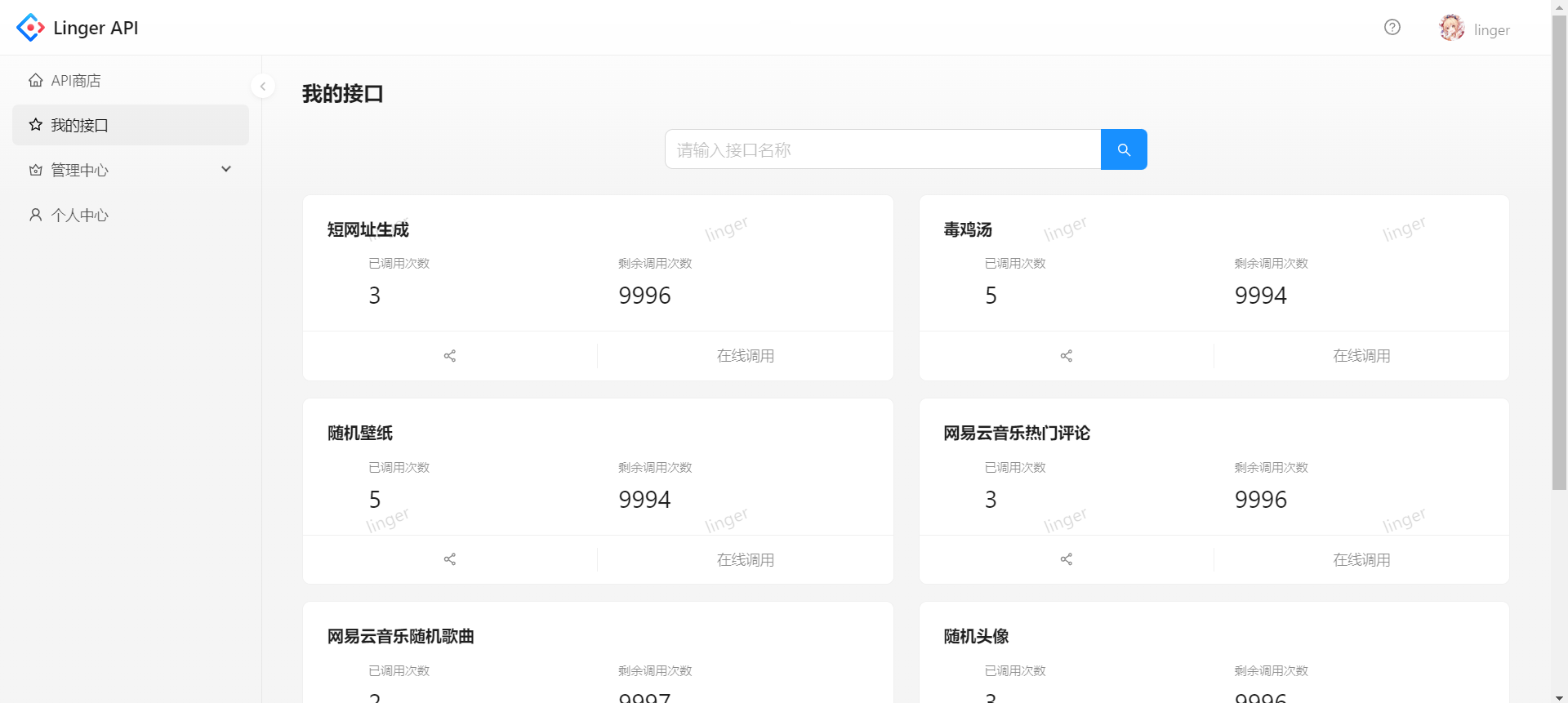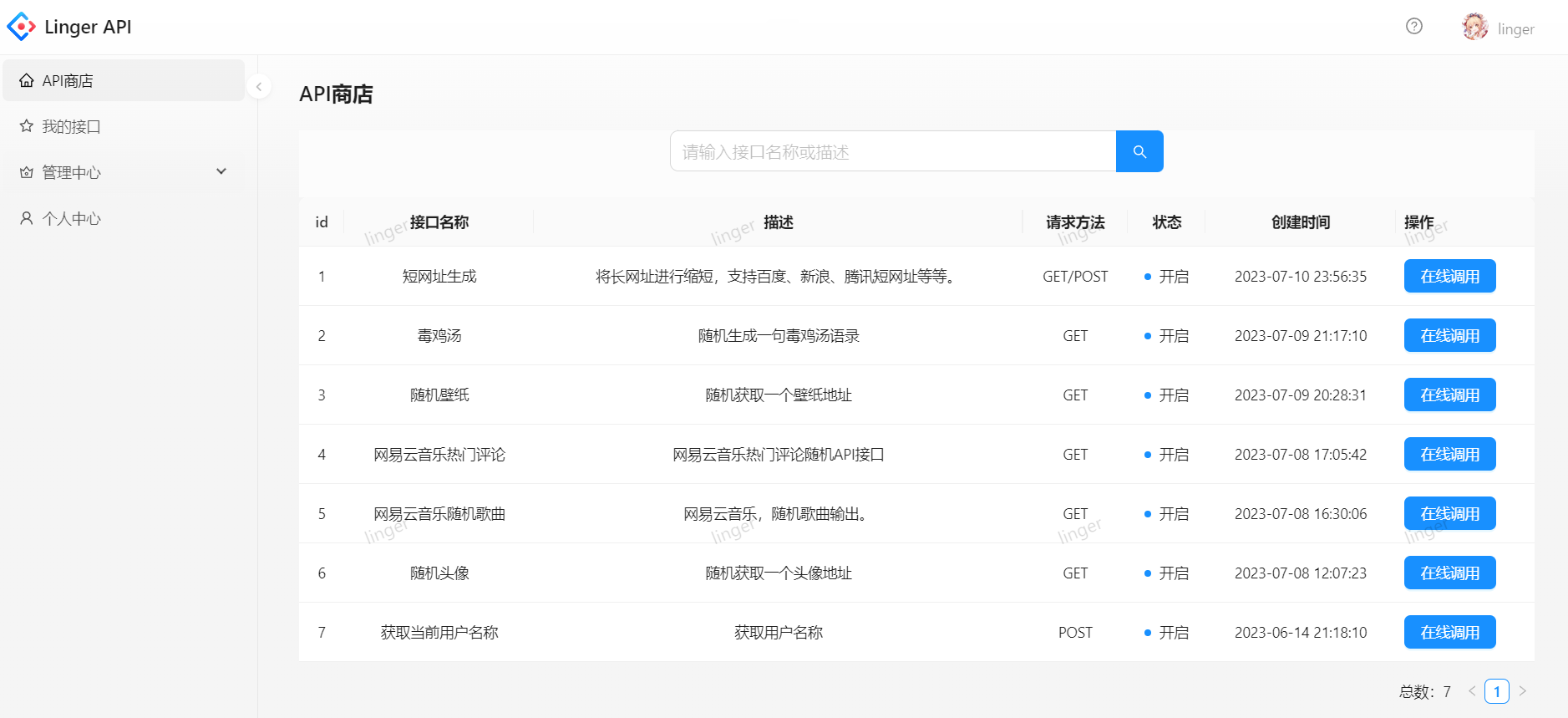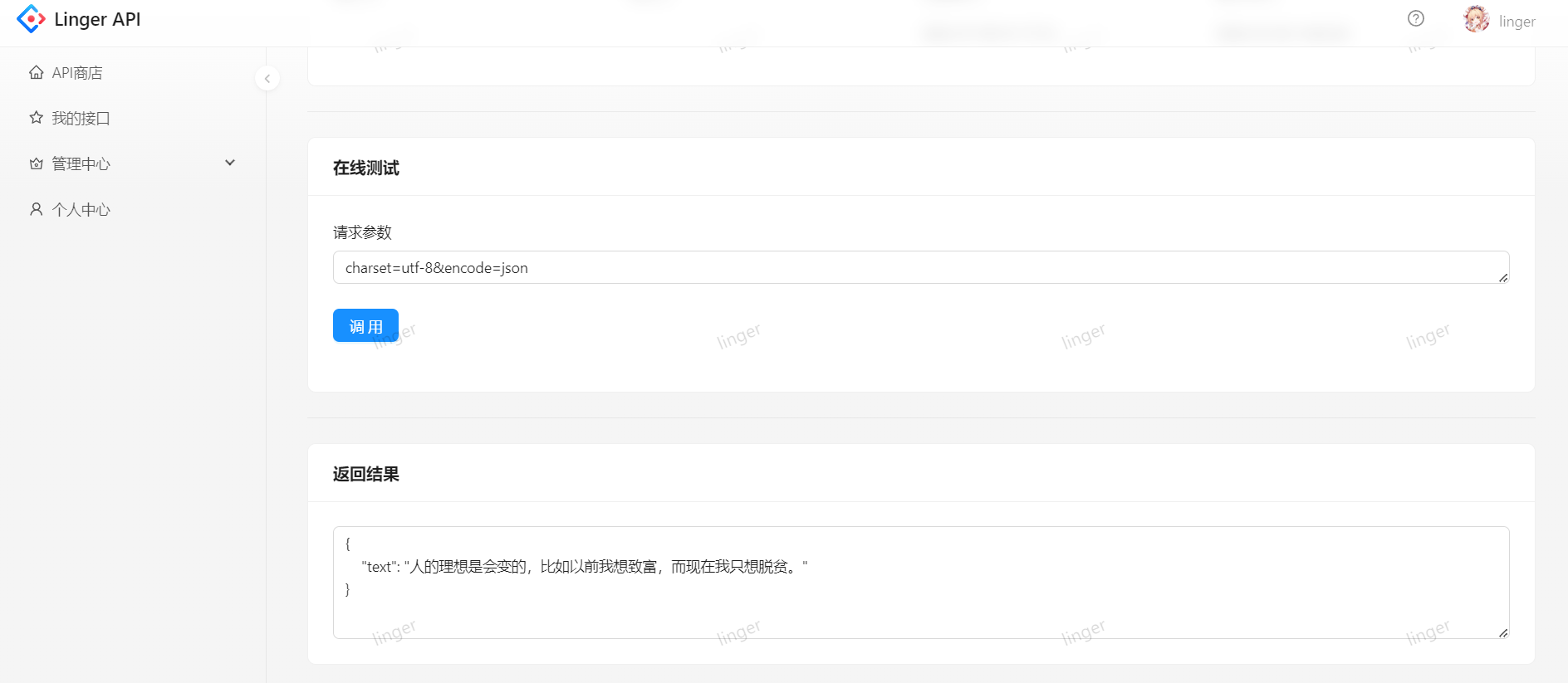 在线体验地址:Linger API